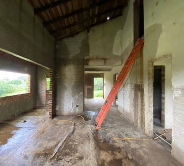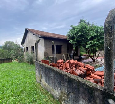Sem dúvidas este foi o maior desafio do escritório, pois esta casa estava abandonada a 15 anos, com muitas trincas diagonais e milhares de moradores indesejados ( morcegos ). Após o laudo técnico de um engenheiro, começamos a transformação completa externa e interna.