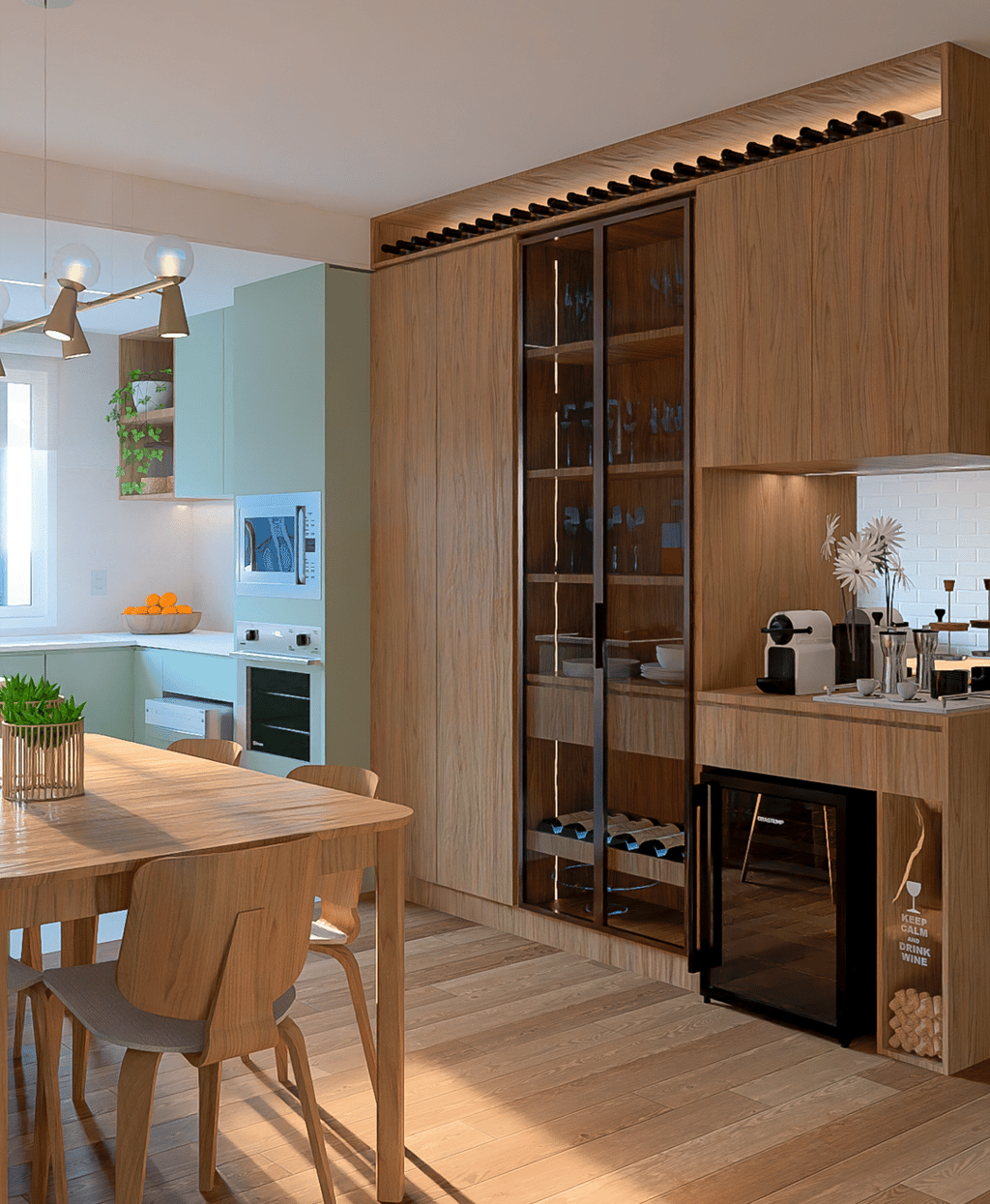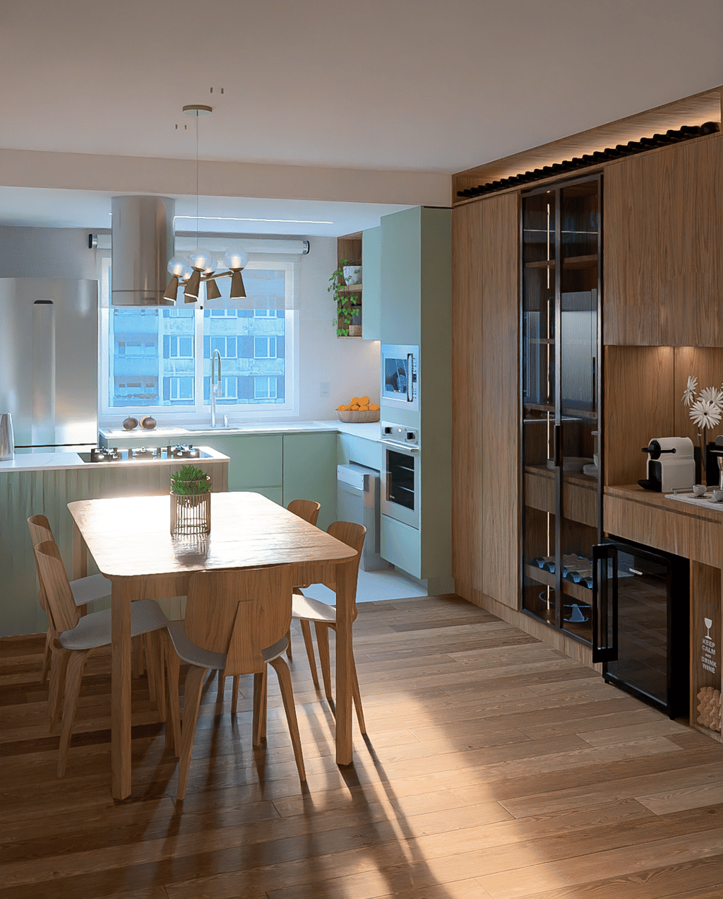O principal objetivo do projeto foi suavizar as divisas, fazendo com que os dois sobrados se apresentassem como uma única residência, com fachada integrada. Para isso, adotou-se um tom neutro nas paredes de separação, enquanto nas goleiras foi utilizado um tom mais escuro, criando contraste e direcionando o olhar. A iluminação cênica desempenha um papel essencial, trazendo sofisticação e realçando a imponência da fachada.