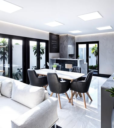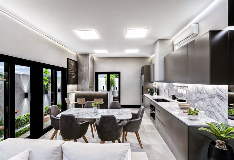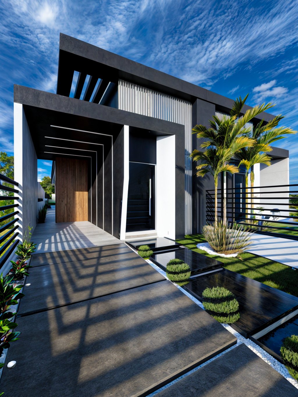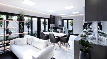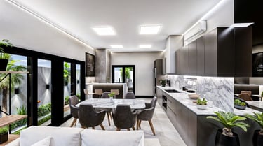 Sobrados térreos desenvolvidos para a cidade de São José SC, a ideia principal deste projeto foi trazer imponência para a fachada e deixar as áreas sociais mais privativas, então invertemos o sentido dos ambientes no layout, trouxemos os 3 dormitórios para frente, e a sala de estar, sala de jantar e cozinha / gourmet com churrasqueira, ficaram dispostos no fundo da residência, de forma que se integra ao pátio externo, ampliando o espaço.